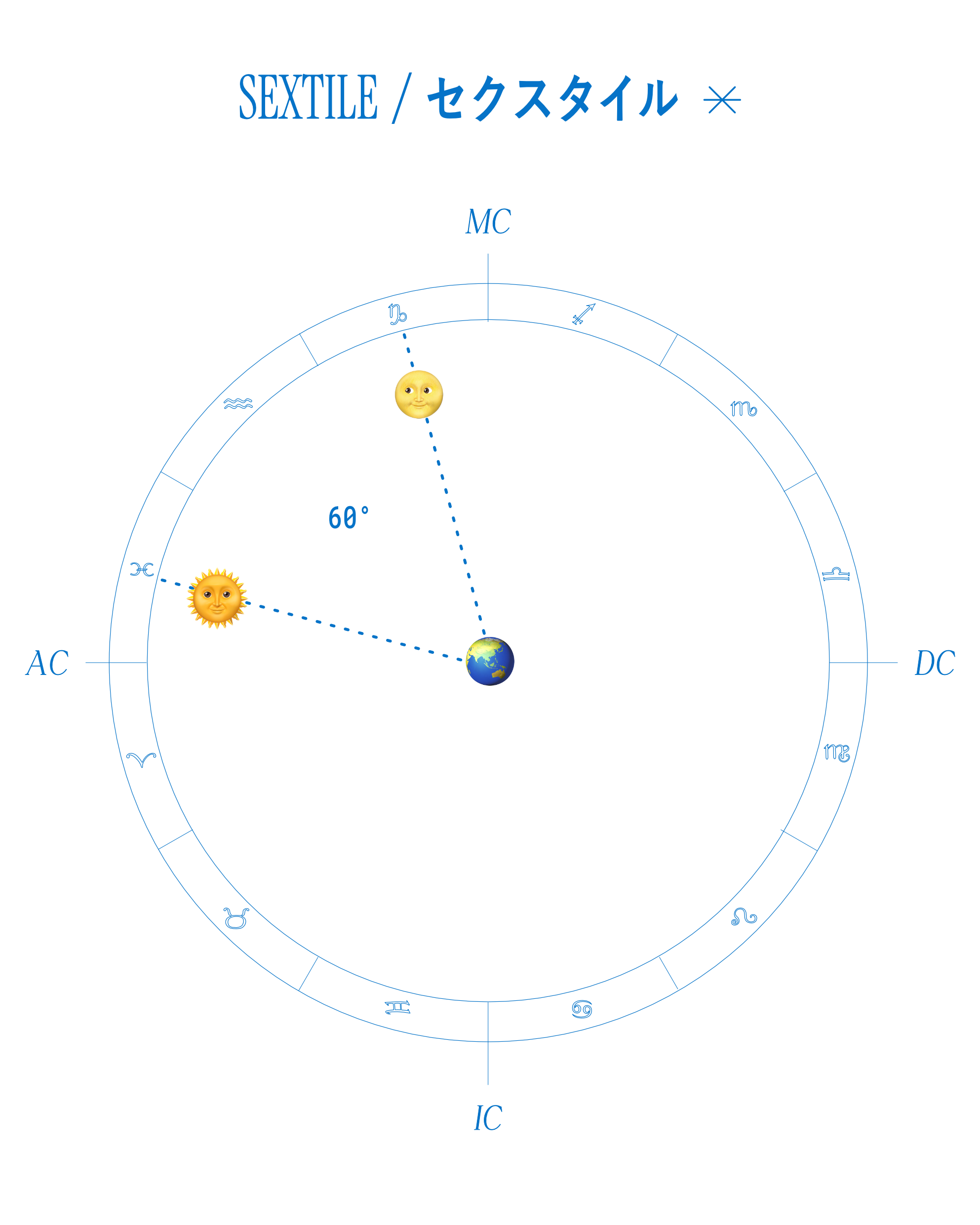 アストロロジーでは、これらの地球から見た天体同士の特別な角度を